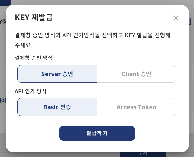 위 사진에서 발급 버튼을 클릭하면 아래와 같은 팝업창이 뜬다.